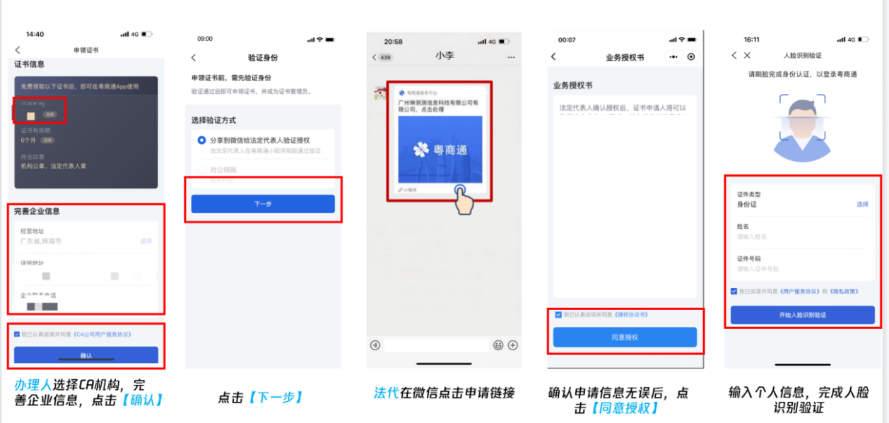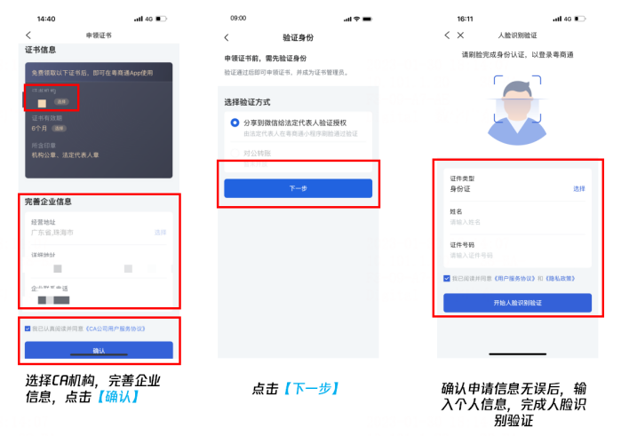 選擇CA機構,完善企業信息,完成人臉識別驗證。