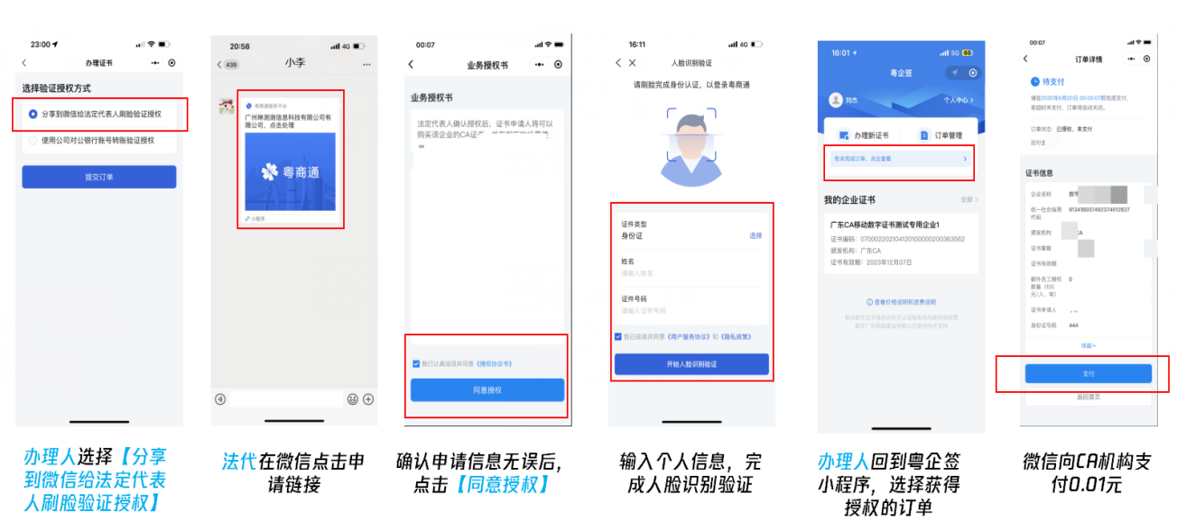 微信給法定代表人分享辦理申請。法定代表人在微信完成人臉識別驗證。