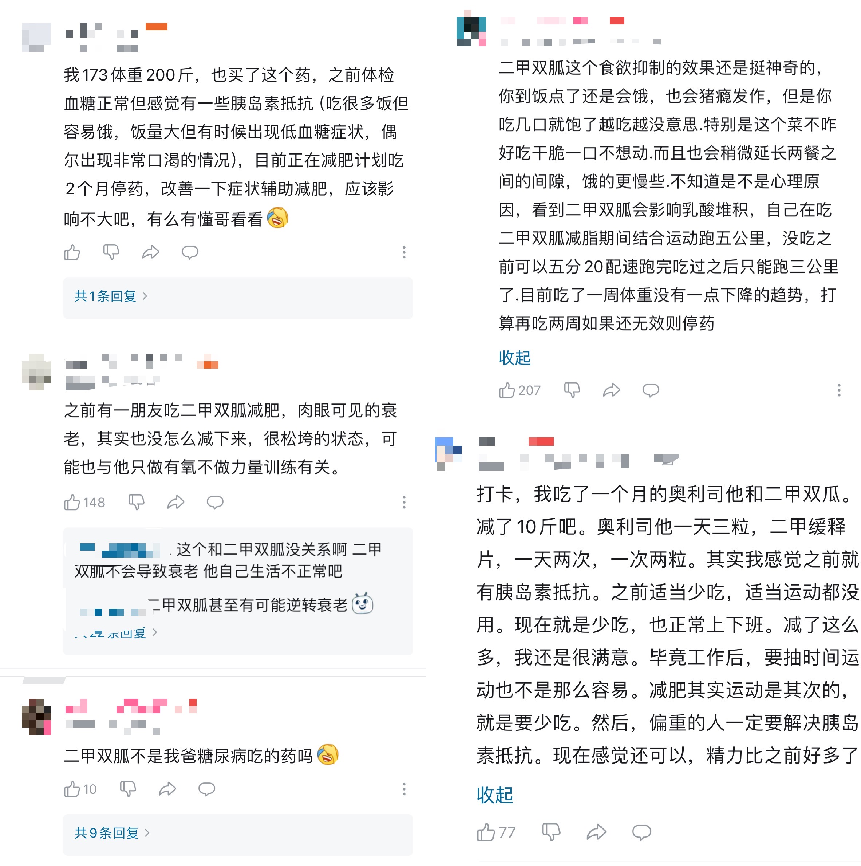 根據國家衛健委發布的《肥胖癥診療指南(2024年版)》,目前在我國有五種減重藥物獲得國家藥品監督管理局批準用于成年原發性肥胖癥患者減重,分別是:奧利司他、利拉魯肽、貝那魯肽、司美格魯肽,以及替爾泊肽,其中并不包括二甲雙胍