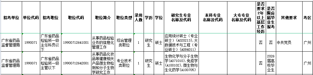 【南方網】招人啦!2026年廣東省考報名中!省藥檢所招2人→