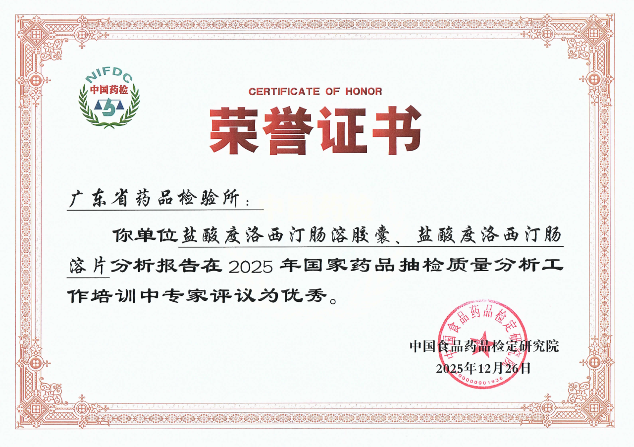 據了解,2025年國家藥品抽檢共涉及143個品種,經嚴格篩選僅有69個品種進入現場評議環(huán)節(jié)。在中檢院主辦的2025年國家藥品抽檢質量分析工作培訓會上,經過網絡評議與現場綜合評議的激烈角逐,省藥檢所4個進入現場評議的品種脫穎而出、名列前茅,全部獲評優(yōu)秀,獲獎率達到100%。