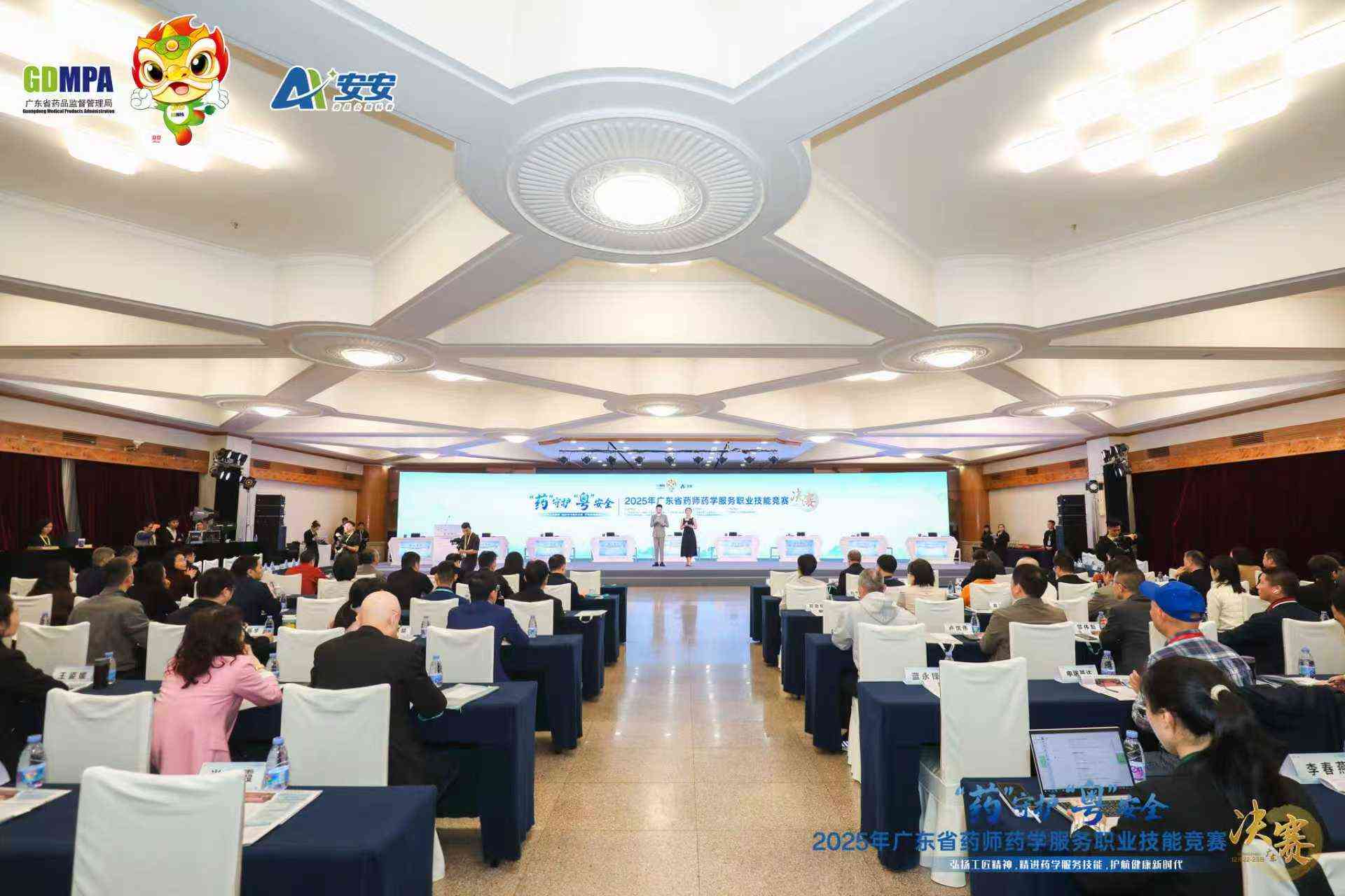 本次競賽以“‘藥’守護,‘粵’安全——弘揚工匠精神,精進藥學(xué)服務(wù)技能,護航健康新時代”為主題,由廣東省藥品監(jiān)督管理局聯(lián)合廣東省總工會、省人力資源和社會保障廳、省工業(yè)和信息化廳、省科技廳主辦,省財貿(mào)工會委員會和省藥品監(jiān)管局事務(wù)中心承辦,各地級以上市市場監(jiān)管局協(xié)辦。自今年9月啟動以來,競賽采用“初賽—復(fù)賽—決賽”三級賽制,決賽設(shè)半決賽和總決賽兩輪賽程,吸引全省藥品經(jīng)營企業(yè)、醫(yī)療單位約8000名藥師積極參與。經(jīng)網(wǎng)絡(luò)初賽、地市復(fù)賽的層層篩選,21個地市71名優(yōu)秀選手會師決賽,齊聚廣州同臺競技。