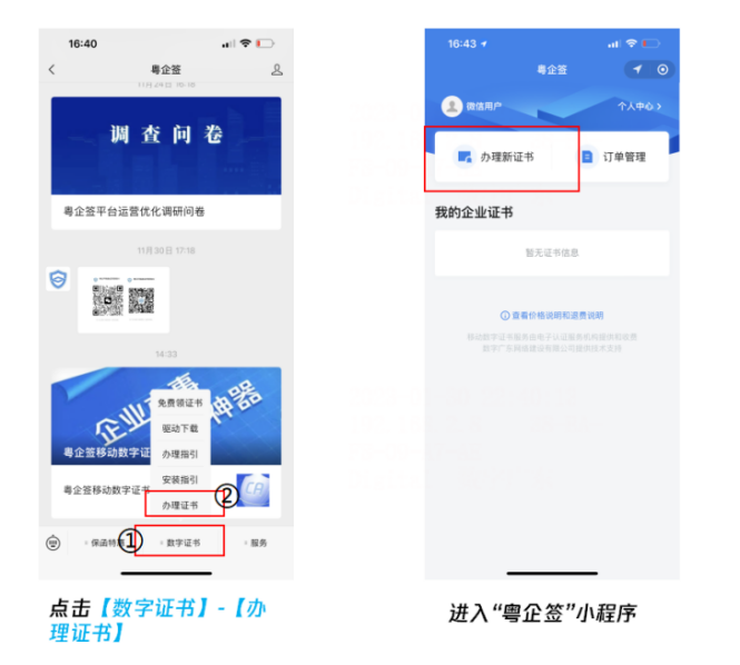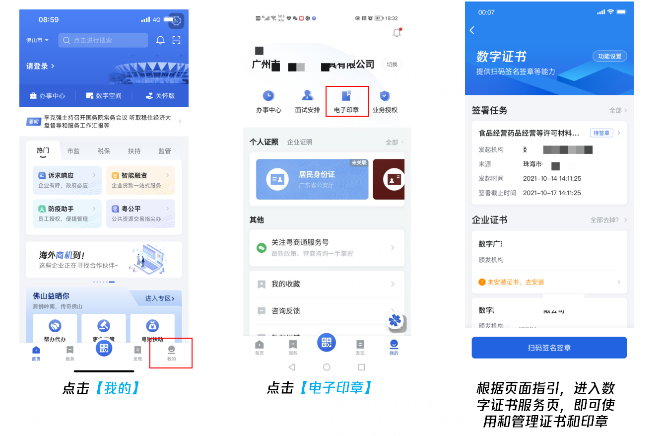 2、辦理成功后,用戶需前往粵商通APP安裝、使用、管理證書和印章。