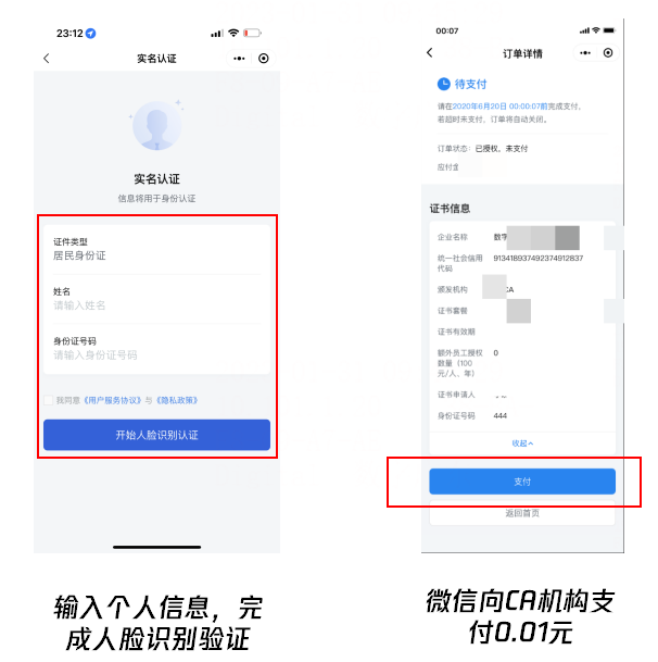 選擇CA機構,完善企業信息,完成人臉識別驗證。