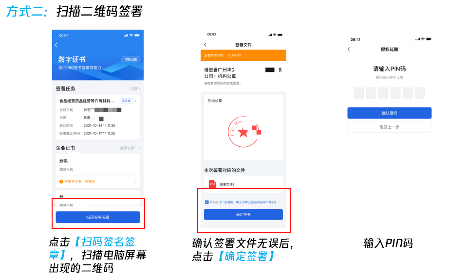 2.在粵商通APP安裝數字證書,設置PIN碼時,6位數字需謹記,如果忘記,可在粵商通APP-我的-電子印章-功能設置-PIN碼設置處重置;